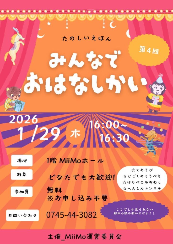 みんなでおはなし会では、小さなお友だちから小学生のお友達まで、体も心も動かして楽しめる工夫がいっぱいです! MiiMoで絵本を通じて楽しいひととき、一緒にどうぞ。