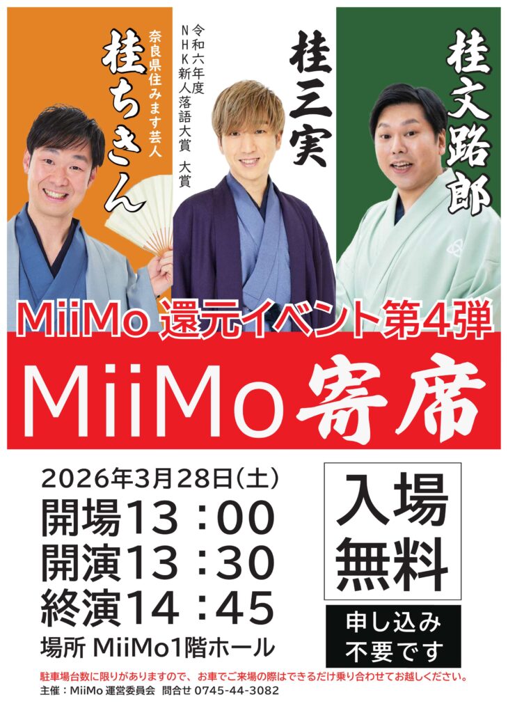 日時:2026年3月28日(土) 開演 13:30(開場13:00) 終演14:45場所:MiiMo1階ホール入場無料(申し込み不要)