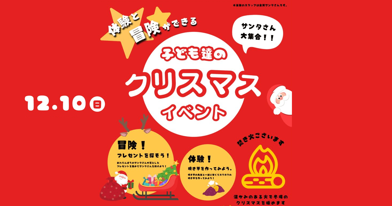 12月10日(日)体験と冒険ができる子ども達のクリスマスイベント