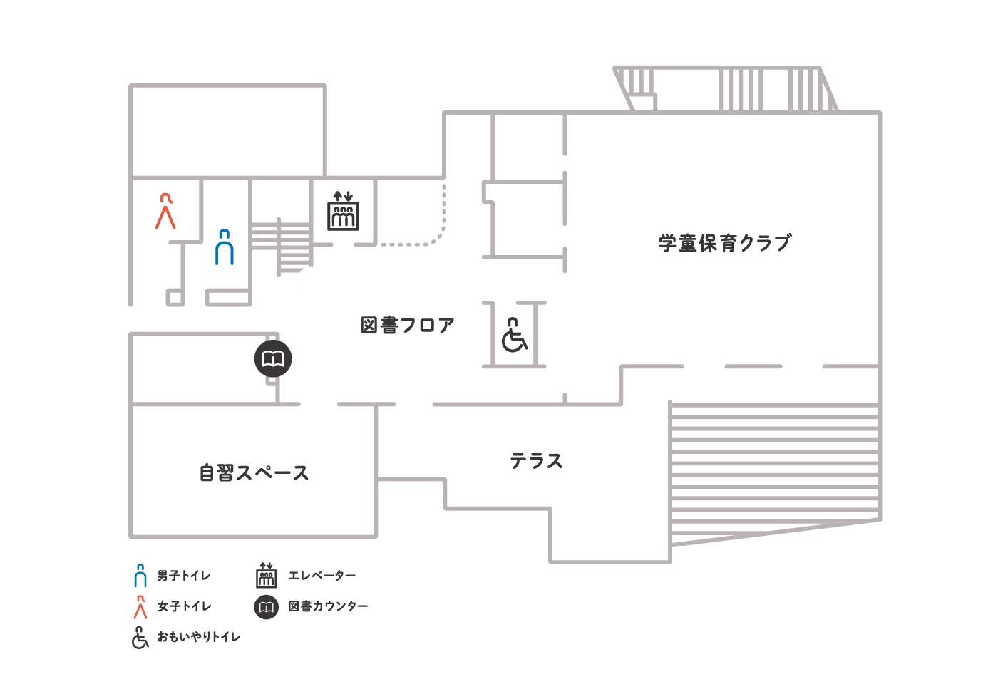 子どもから大人まで本に親しめ、本を通した交流が生まれる図書室。小さなお子さんが利用しやすい読み聞かせコーナーや、落ち着いて勉強や調べ物ができる自習スペースも設けています。